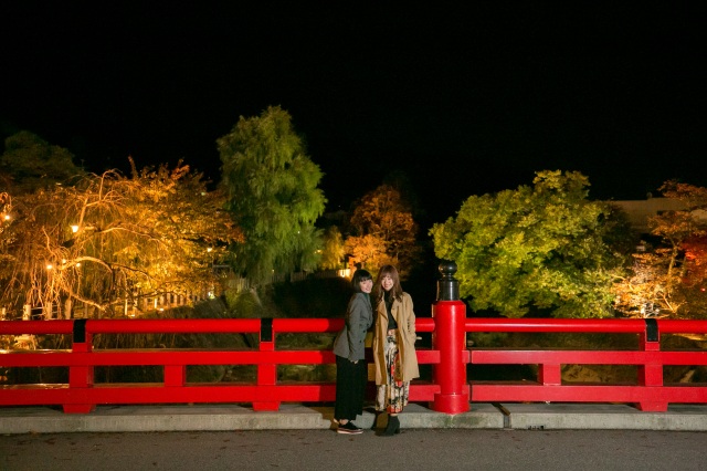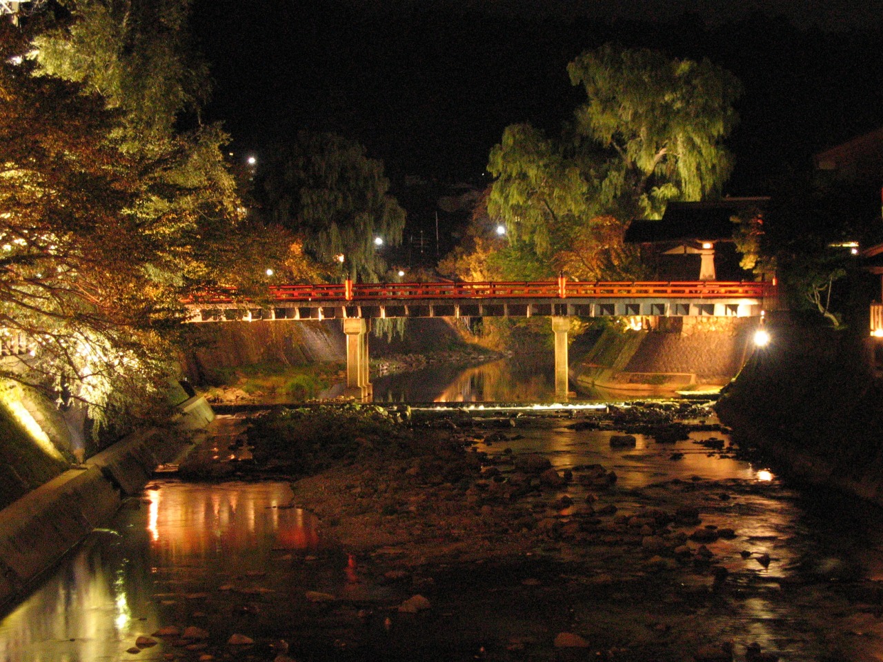 昼間のにぎわいから一転、落ち着いた雰囲気になる夜の高山。秋の夜長をライトアップで演出します。