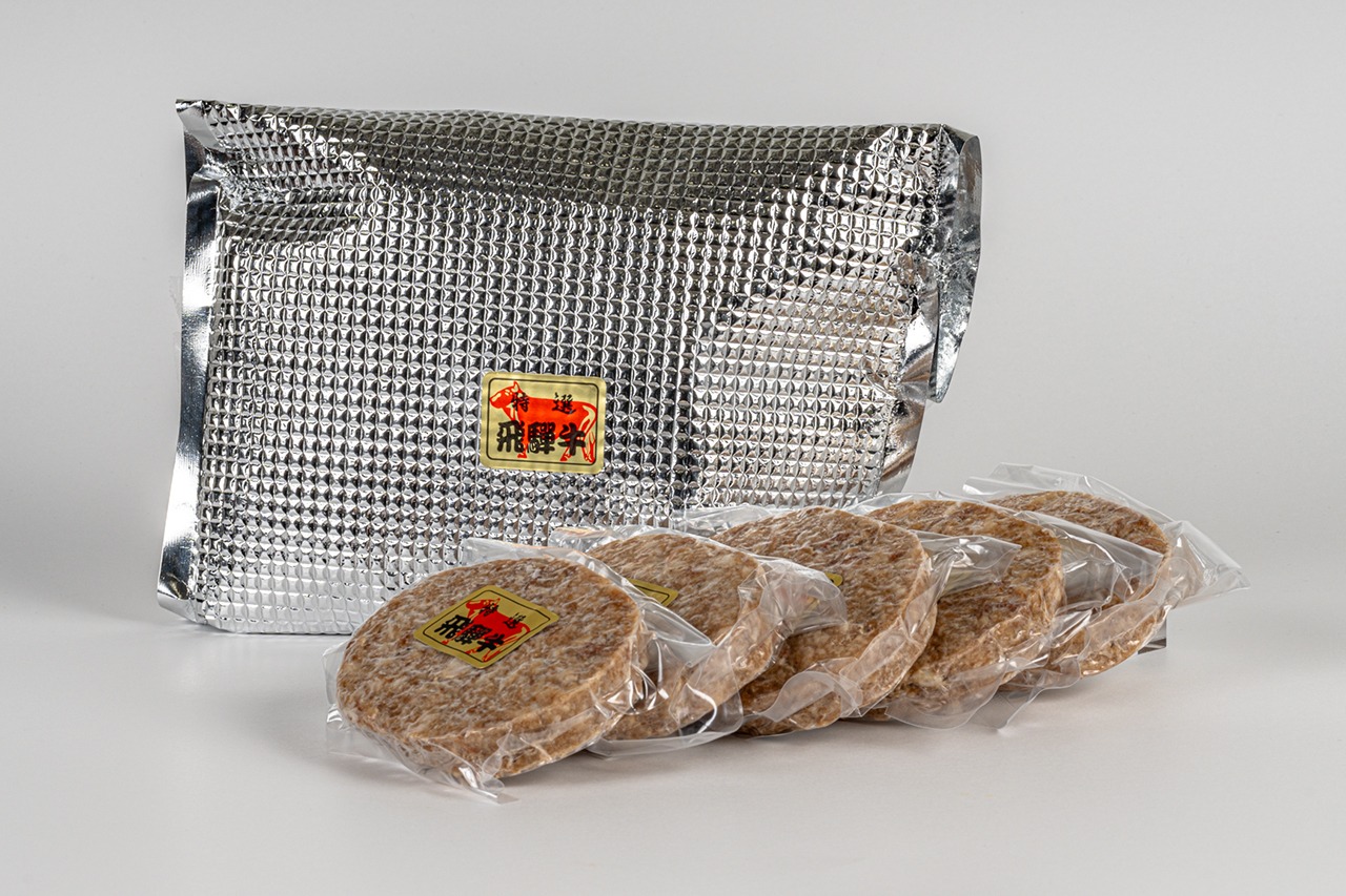 飛騨牛を100%使用し野菜と共に練り上げたパテを特殊な冷凍機を使い瞬間冷凍しました。肉汁溢れる、作りたての味をご家庭にお届けします