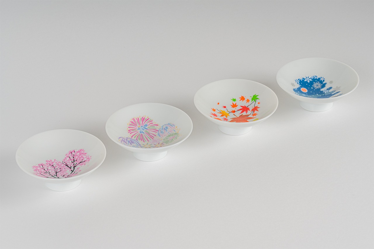 日本の四季の美を表現した冷感シリーズの4個セット。手の平に鮮やかに広がる四季折々の姿を眺めながら癒しのひと時をお過ごしください。