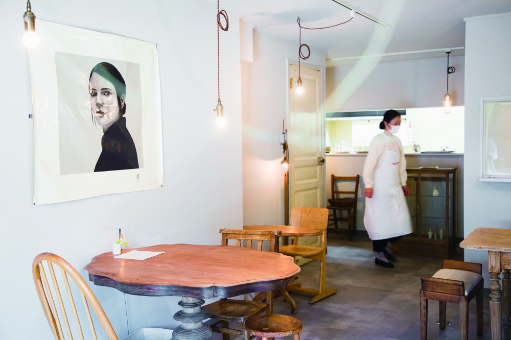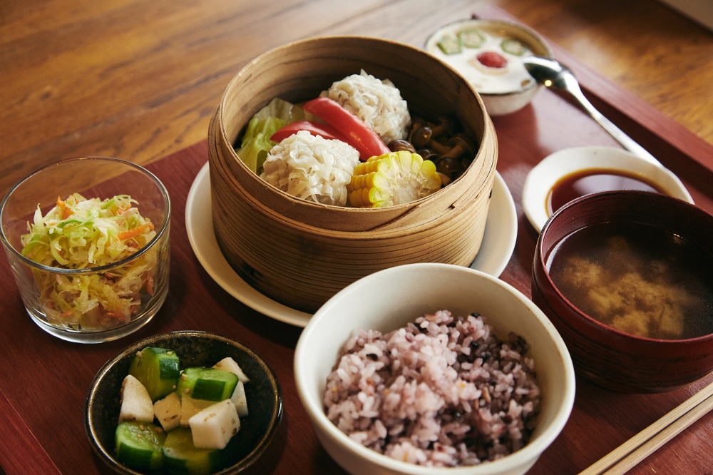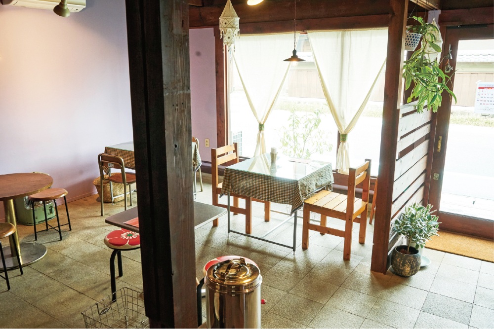 元教員の榊原悠介さんとこどもの本専門店に勤めていた真以子さんが、2019年に開店したカフェ「本とごはん ある日」。店内の奥半分が書店スペースになっており、ロングセラーの絵本や童話がずらりと並んでいます。ランチは、毎日主菜が替わる「今日のランチ」(940円)と「今日のカレー」(880円)を提供。主菜は、せいろでもっちりと蒸し上げた「花しゅうまい」や、地元の「恵那どりの塩煮込み」、カレーでは「豚の角煮カレー」や「キーマカレー」が人気で、ランチだけでなく、自家製スイーツも楽しめます。