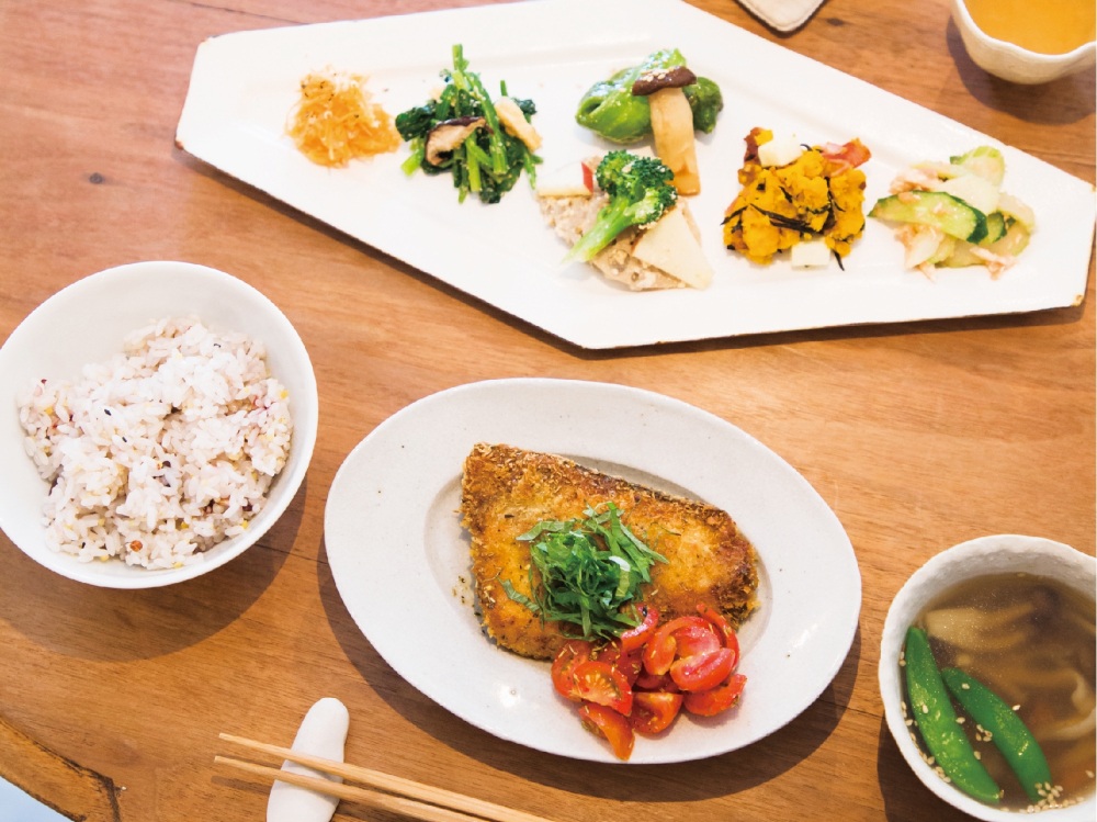 大垣市にあるカフェ「kahan(カハン)」。店内には、店主・佐竹さんがコツコツと収集してきたアンティークのインテリアや、作家もののオブジェが散りばめられています。そんなカハンのランチは、1日約16食限定の「おひるごはん」(1200円)。急須で淹れる麦茶に、6種類の前菜、日ごとに替わるメインのおかず、スープ、十六穀米のセットです。主役の野菜は、農家である実家や、ファーマーズマーケットで仕入れているそう。ランチの他にも、コーヒーやジュースなどのドリンクとケーキが数種類あり、ゆったりと時間を過ごすことができます。