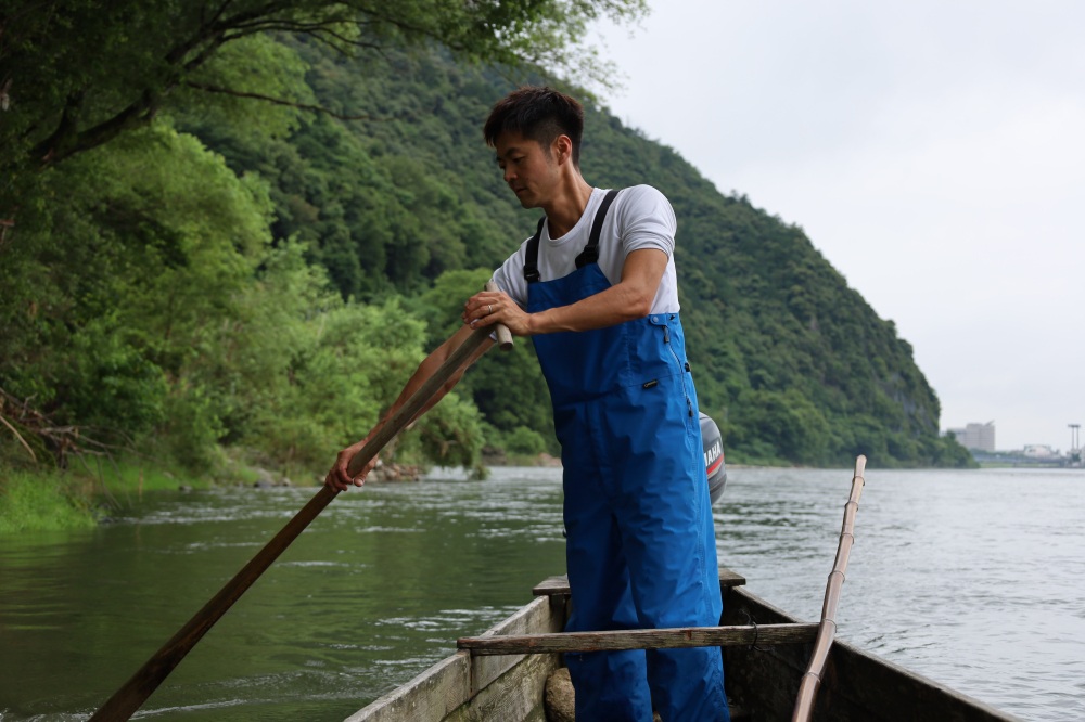 「『舟持ち漁師はステージが違う』といわれます。単なる技術的な話ではなく、川との向き合い方です。毎日川に出て漁をしていれば、数センチの水位の変動もわかる。ほんの小さな変化でも、魚たちに影響します。そしてそれは、僕らの生活に関わる一大事です。台風や豪雨のときも、僕らは家に帰らずに夜中もずっと舟を見守っている。舟を持つ暮らしは、地球の営みに自分の暮らしを合わせることです。それをし続けることで見えてくる豊かな景色が岐阜にはあります」。