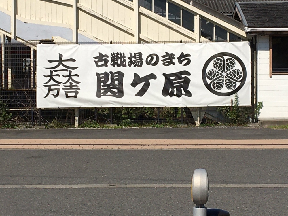 JR関ケ原駅を降りると、合戦で活躍した名だたる武将たちの名前や旗、家紋があちらこちらに掲げられています。