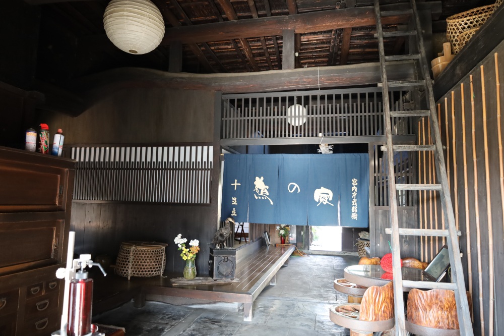 陽一郎さんの生家、「鵜の家 足立」。代々鵜匠を務めてきた足立家が、飲食業と宿泊業を営んでいます。建物は築300余年の木造家屋。明治時代に宮内庁の管轄となり下付された「御用提灯」や、武家屋敷などで身分の高い人物が出入りするために設けられた「式台」、東海圏で数軒しかないという鳥居のような造りなどが残ります。