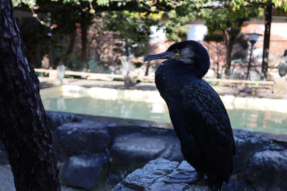鵜は自分が過ごす位置が決まっているそうで、じっと動かず目をつぶっているものも。落ち着いているので、じっくりと観察できます。