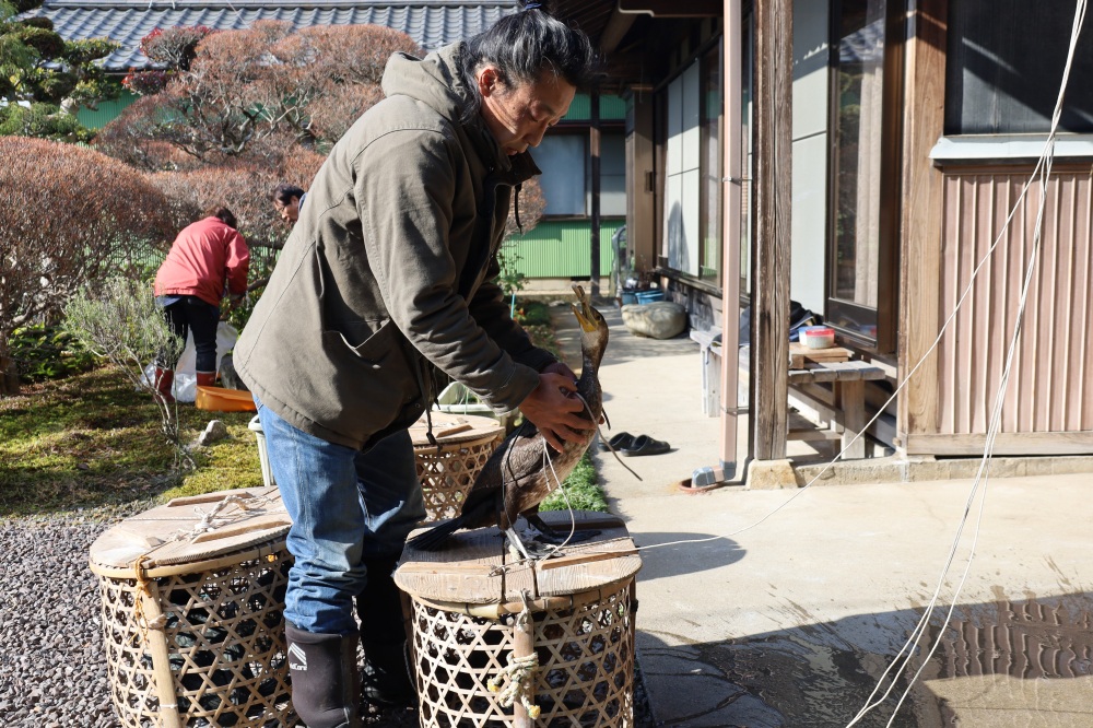 やって来る鵜は茨城県日立市十王町にある指定の捕獲場で捕獲された野生のウミウ。鵜を捕獲できるのは、許可を得た数人のみです。
