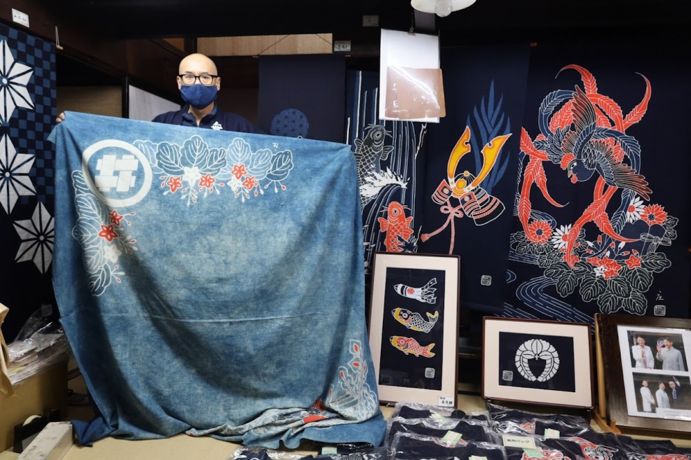 「かつては全国どこでも城下町には紺屋(こうや)と呼ばれる正藍染の染物屋があり、祭りで着るはっぴや寺社の幕、戦の際の旗や陣地幕などを作っていました」。