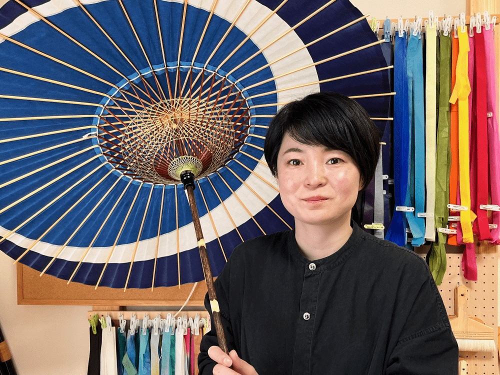 河合さんが和傘職人になったきっかけは、老舗の和傘問屋「坂井田栄吉店」を営む叔父から「和傘を作ってみないか」と誘われたこと。「幼い頃、週末や夏休みになると工房に遊びに行き、和傘職人だった祖母の手仕事を見て育ちました。私にとって和傘は、当たり前に身近にある存在でした」。