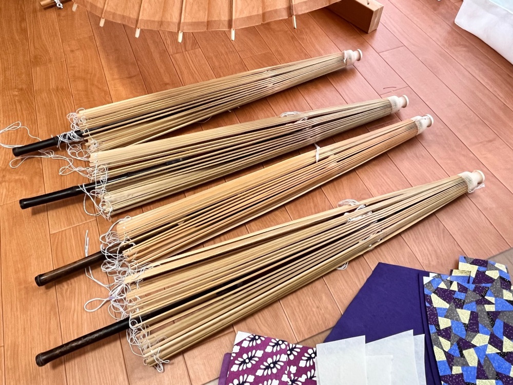 「少し遊びをもたせるんです。傘を開いた時には、パシッときれいに和紙の風合いが出せるように、そして閉じた時にはすっきりとした美しさが保てるようにイメージしながら張っています」。