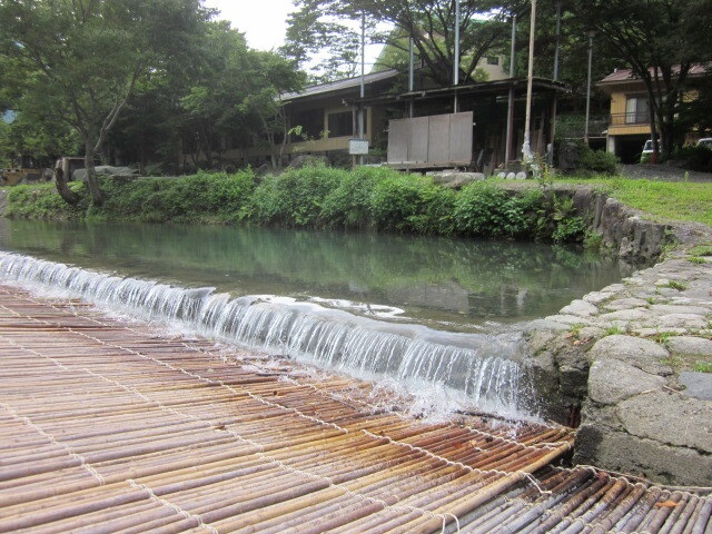 豪快な水しぶきの中、鮎がすのこの上でピチピチはねて清涼感満載!食事のあと、このヤナの上で川遊びができるところもあり、お子さんも大満足!
