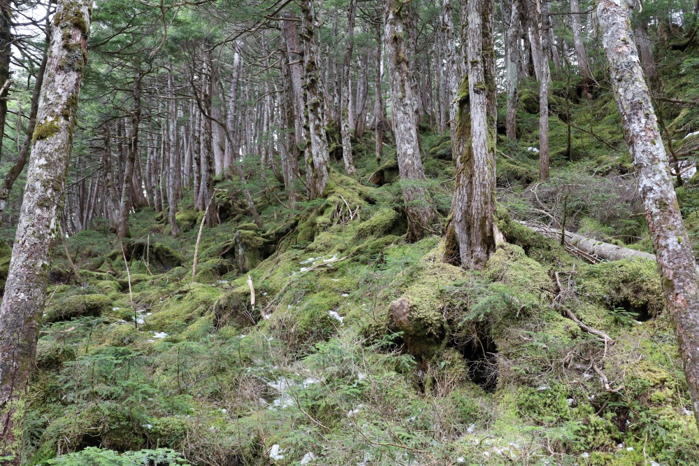 「五色ヶ原は、乗鞍岳の噴火によって流れた溶岩でつくられた大地。岩や倒木の表面を覆うように苔がむし、そこに木々が生えて森になる。落ち葉や倒木が朽ちて積もり、土ができていくんです」。