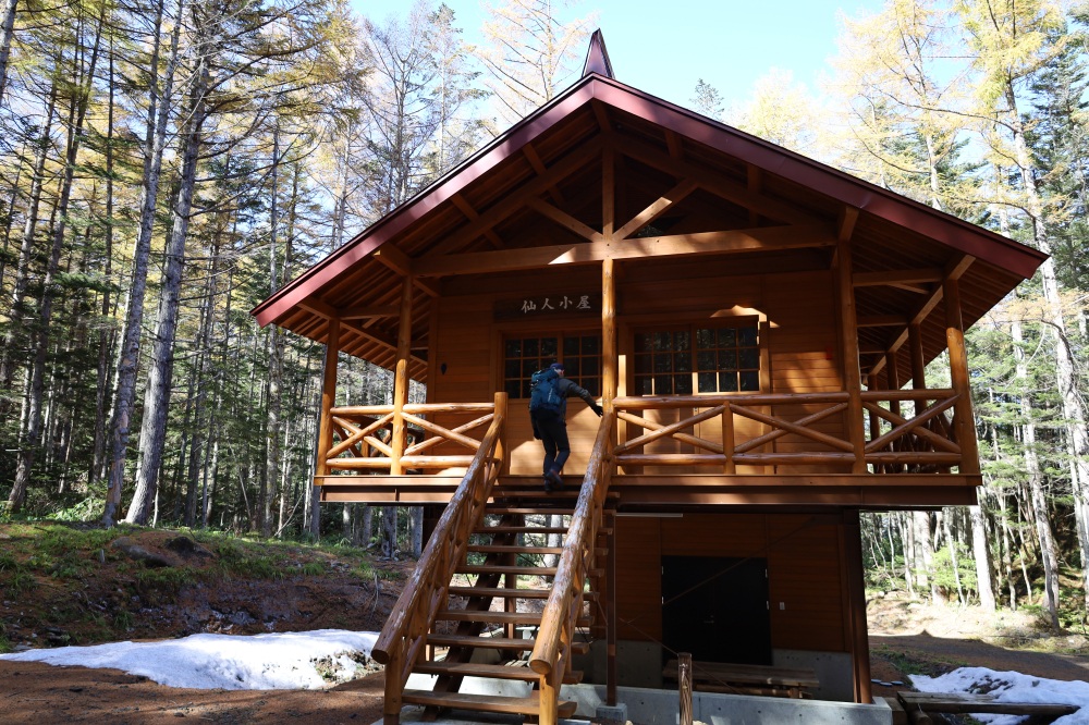 五色ヶ原の森には全部で5カ所ある山小屋で休憩できます。驚いたのは、非常に山奥い場所にもかかわらず水洗の洋式トイレと電気があること。トイレは微生物によるバイオマス浄化システムを利用して自然に循環。電気は小屋の近くを流れる川の水を使った水力発電です。