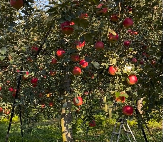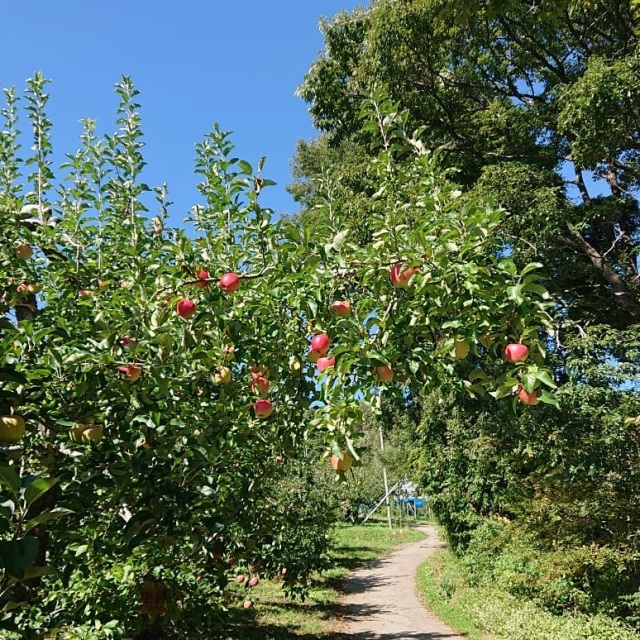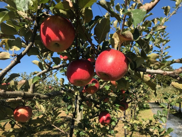 - 高冷地のため日中と夜の気温差が大きくおいしい果物が実る堤果樹園。りんごが時間無制限で食べ放題です!