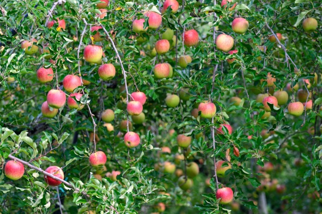 - なだらかな丘に広がるリンゴ園。りんご狩りは時間無制限なのでお弁当を持参で家族で一日過ごせます♪