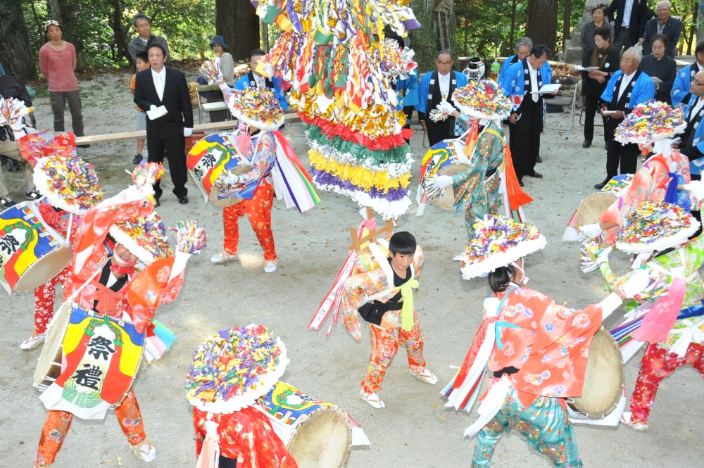 春日に受け継がれているのは薬草文化だけではありません。神様に感謝と五穀豊穣を願い、毎年11月に神社で行われる「鎌倉太鼓踊り」は、春日の5地区に伝わる「太鼓踊り」(岐阜県重要無形民俗文化財)の一つ。色鮮やかな笠と衣装に身を包み、太鼓を打ちながら踊りを舞います。