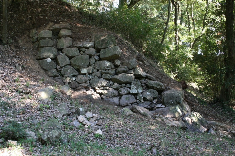 妻木城(土岐市)山頂を中心に約200メートル四方の範囲に曲輪、石垣、土塁などの遺構が残る