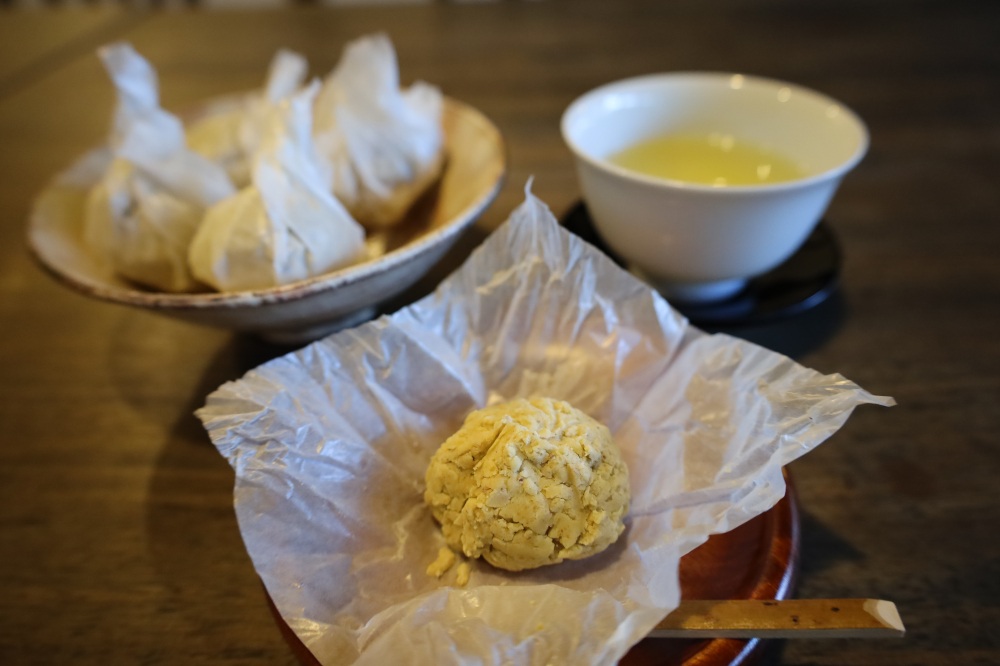 市川製茶のある中津川市やお隣の恵那市は、中山道の文化が残る地域です。地元の和菓子屋で栗粉餅と栗きんとんを買い、情緒が残る中山道で食べ歩き。ローカルな旅ならではのごちそうです。