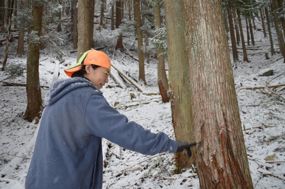 訪れた日は、大雪が降った翌日。動物たちの足跡は消えていましたが、樹皮が削られた木や、不自然にちぎられた葉から、野生動物が近くに暮らすことを感じることができました。