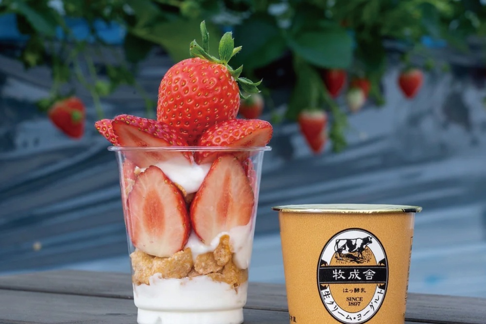 摘んだいちごを使ってその場でパフェづくり体験も♪