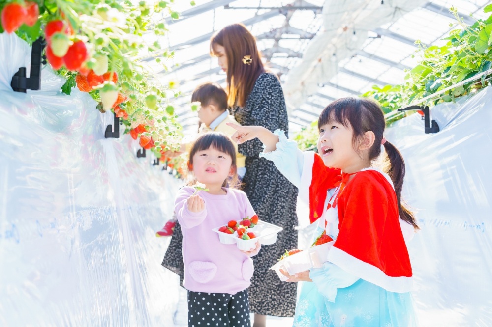 車椅子やベビーカーでも入れる広々レーンの農場や摘んだいちごをゆっくり味わえるテーブルセットがあるビニールハウスなど、それぞれのお好みでチョイスしてくださいね。