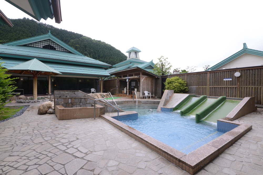 隣接する池田温泉新館は、つるつるした泉質で皮脂を乳化させて古い角質を除去する純重曹の「美肌の湯」で、宿泊も可能。広い露天風呂には打たせ湯や歩行湯、足つぼ快道などがあり、健康に気遣う人にピッタリです。