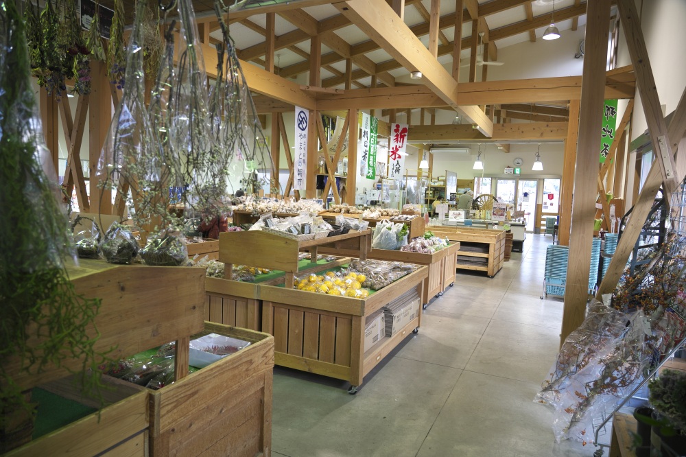 飛騨牛を堪能できるメニューなどが人気の「道の駅 飛騨金山ぬく森の里温泉」。季節の食材が味わえる「新かれん定食」や、飛騨牛の定食も目玉メニューのひとつ。「朝取横丁」には下呂市内、特に金山周辺の農家さんが育てた野菜や山菜が数多く並びます。