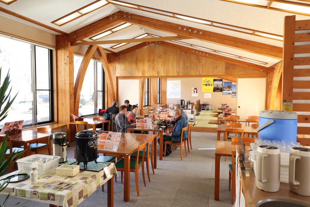 道の駅 桜の郷 荘川は、蕎麦処、荘川のおいしい蕎麦が味わえるほか、売店では高原野菜や鮎加工品に加え蕎麦の乾麺や半生麺などを販売しています。