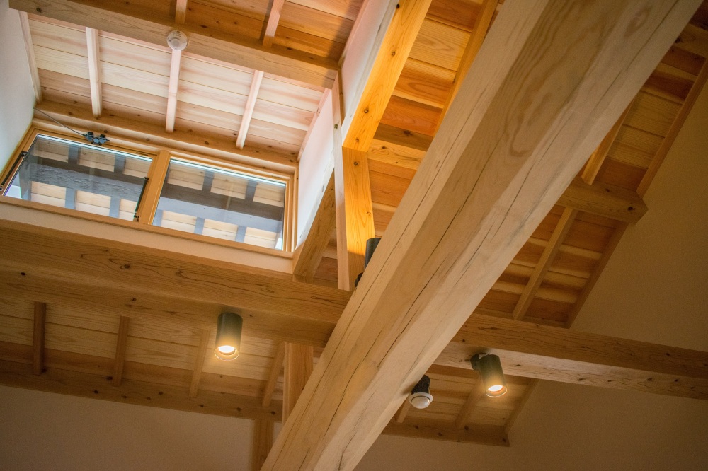 「とても立派だったんですが、痛みが激しくて改築は難しかった。ならいっそ、木造家屋を新築してみようと」。古川の町家を数多く手がける地元の建築家に設計を依頼し、飛騨の古民家に見られる牛丸太などを取り入れました。