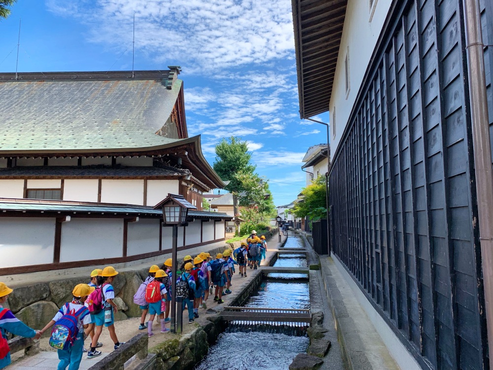 JR飛騨古川駅のロータリーを抜けると、そこには伝統的な町家や白壁土蔵が立ち並ぶ古い町並みが広がります。