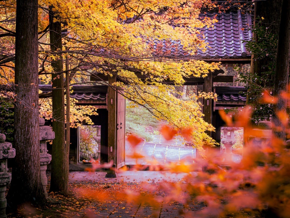 撮影者からひとこと:大智寺は紅葉が素敵なお寺です。何箇所もスポットはありますが、私は山門から続く紅葉がお気に入りです。もみじは紅や黄に染まります。また庭は紅や黄に苔の緑が加わり、趣がありカラフル。週末カメラマンの私は、癒されながら撮影できました。