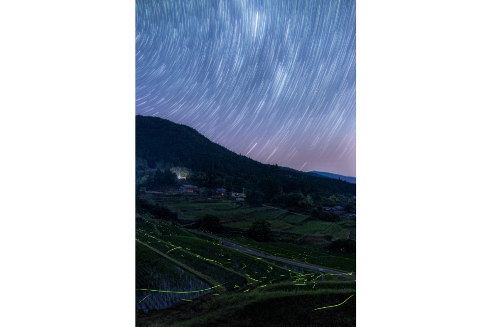 梅雨の晴れ間。空には星、棚田には蛍。天と地に現れるふたつの光を眺めながらとても静かで贅沢な夜を過ごしました。