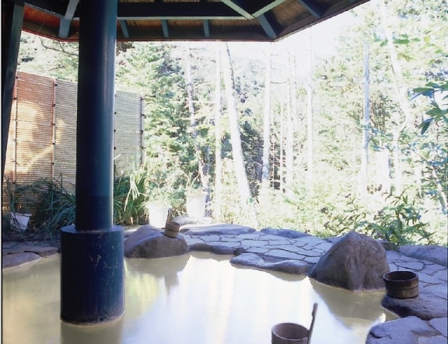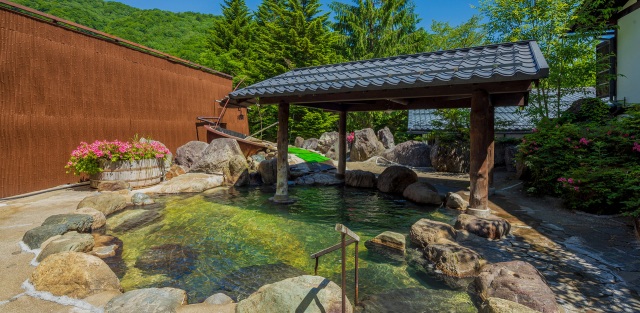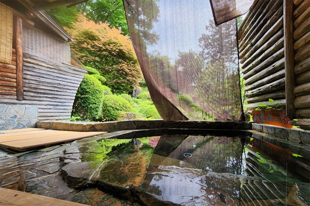 清らかな水が織りなす風景に囲まれた名泉につかる