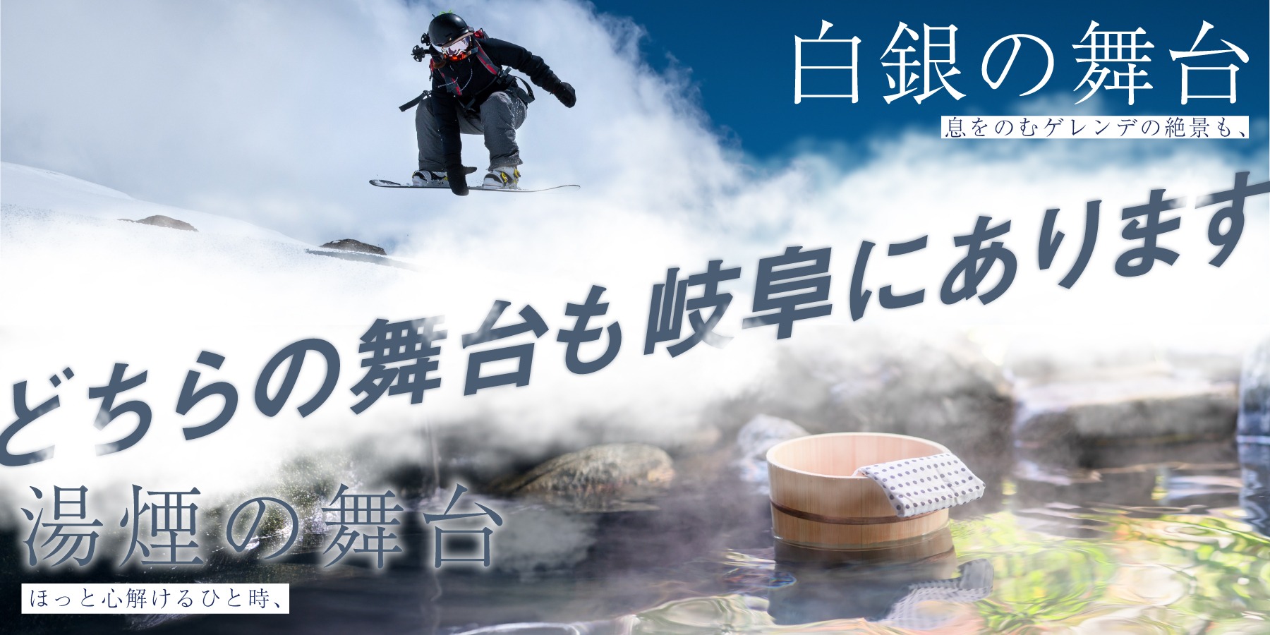 また、冬ならではのアクティビティも豊富で、スキーやスノーボード、静寂の中で楽しむスノーシュートレッキングもおすすめ。澄んだ空気と大自然に抱かれる、岐阜ならではの冬の旅をぜひお楽しみください。