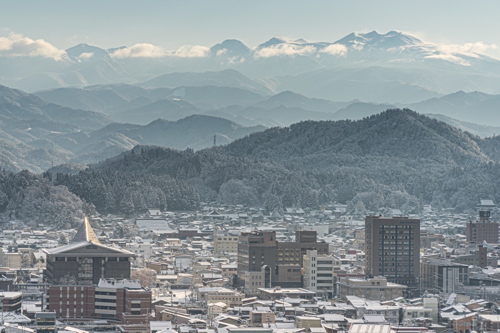 高山市は岐阜県の北部、飛騨地方の中央に位置します。岐阜市からはJR高山本線、あるいは東海北陸自動車道を使い約2時間の距離です。