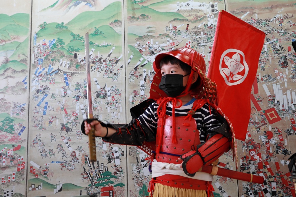 笹尾山交流館で甲冑体験をすると甲冑姿で散策も可能です!