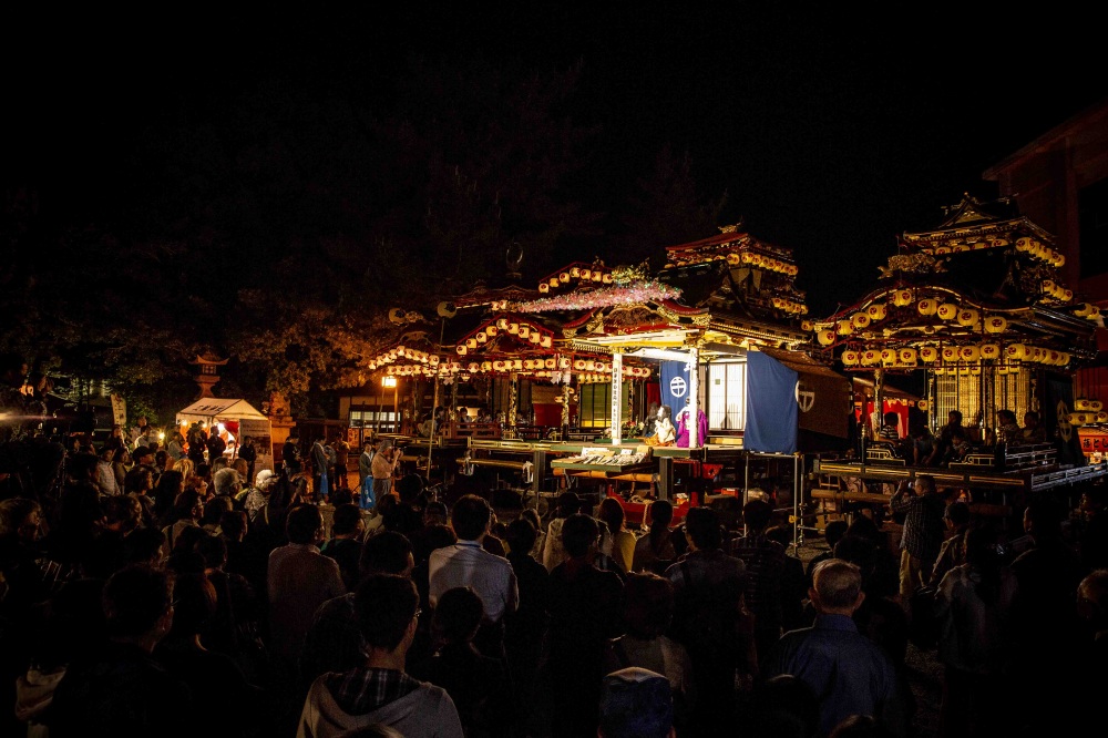 江戸時代享保年間に始まったとされ、三輪神社の祭礼で300余年の伝統があります。祭りは勇壮な神輿渡御や豪華絢爛な5輌の芸やまが三輪神社境内に曳き揃えられます。やまの舞台で演じられる子ども歌舞伎は、多くの観客を魅了します。