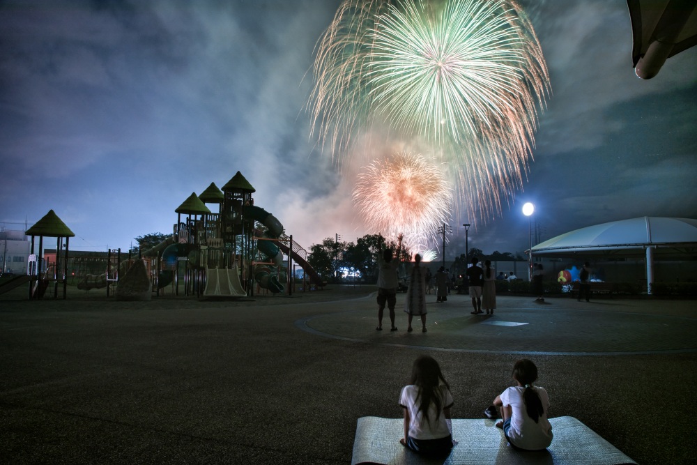 古くから伝わる揖斐川に伝わる「かっぱ伝説」と明治期に発生した水害からの復興を祈願する「水神まつり」に由来します。祭りのメインは“ありがとう花火”揖斐川への感謝の気持ちをメッセージシールとして募集し、花火玉に貼って打ち上げます。直径300メートルの大輪の花を咲かせる「尺玉」打ち上げは圧巻!