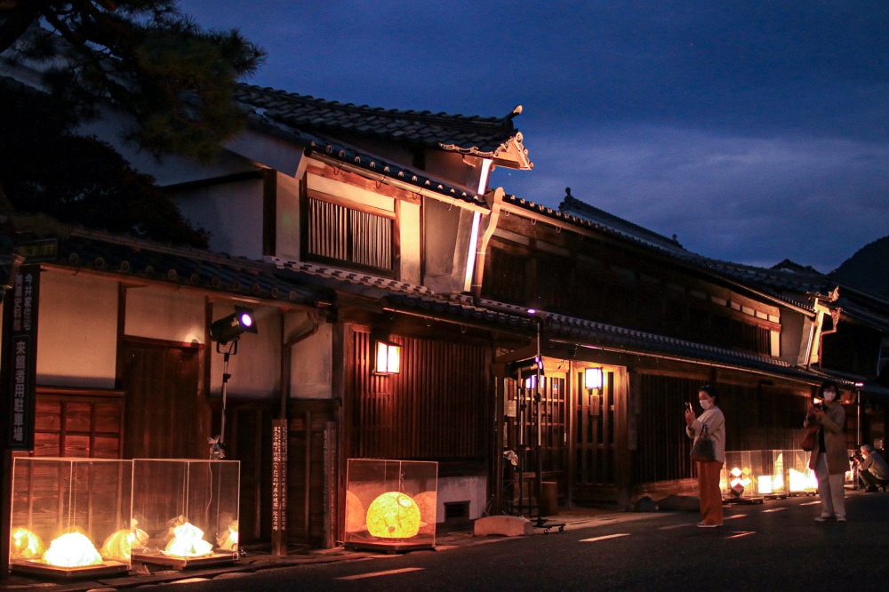 美濃市の秋の風物詩「美濃和紙あかりアート展」。令和5年に30回という節目の年を迎えました。美濃和紙を使って工夫を凝らした作品が全国から集まり、うだつの上がる町並みに展示される光景は幻想的です。第1部にはその年に応募された作品が並び、第2部では歴代の作品が町並みに並びます。