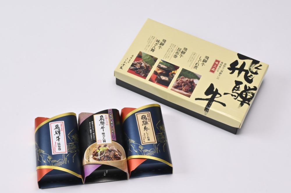 3種類の風味が楽しめる飛騨牛を使った総菜の詰め合わせ