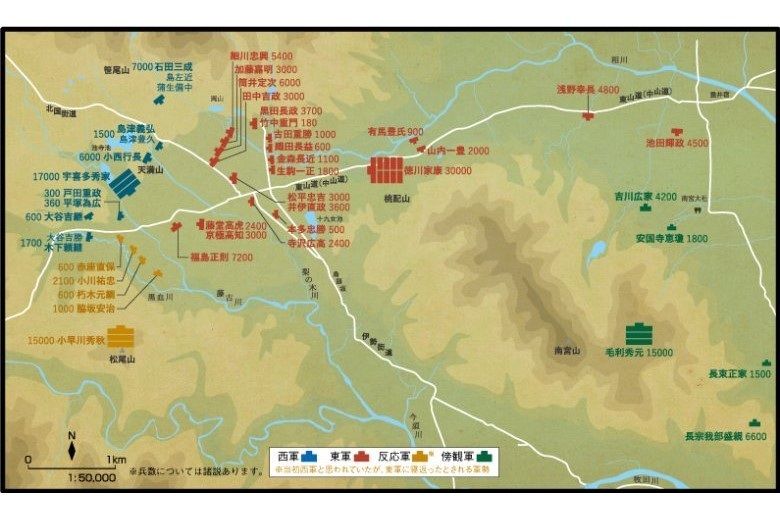 (図:慶長5年9月15日午前8時頃の布陣図)