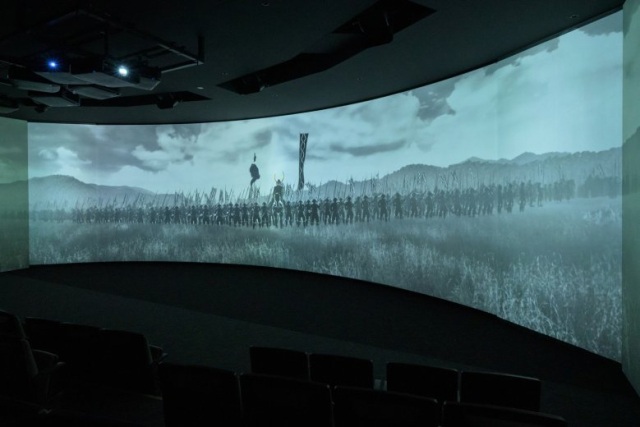 - 縦4.5m、横13mの大型オーバル(曲面)スクリーンでは、関ケ原の戦いのリアルかつ大迫力な映像を見ることができます。