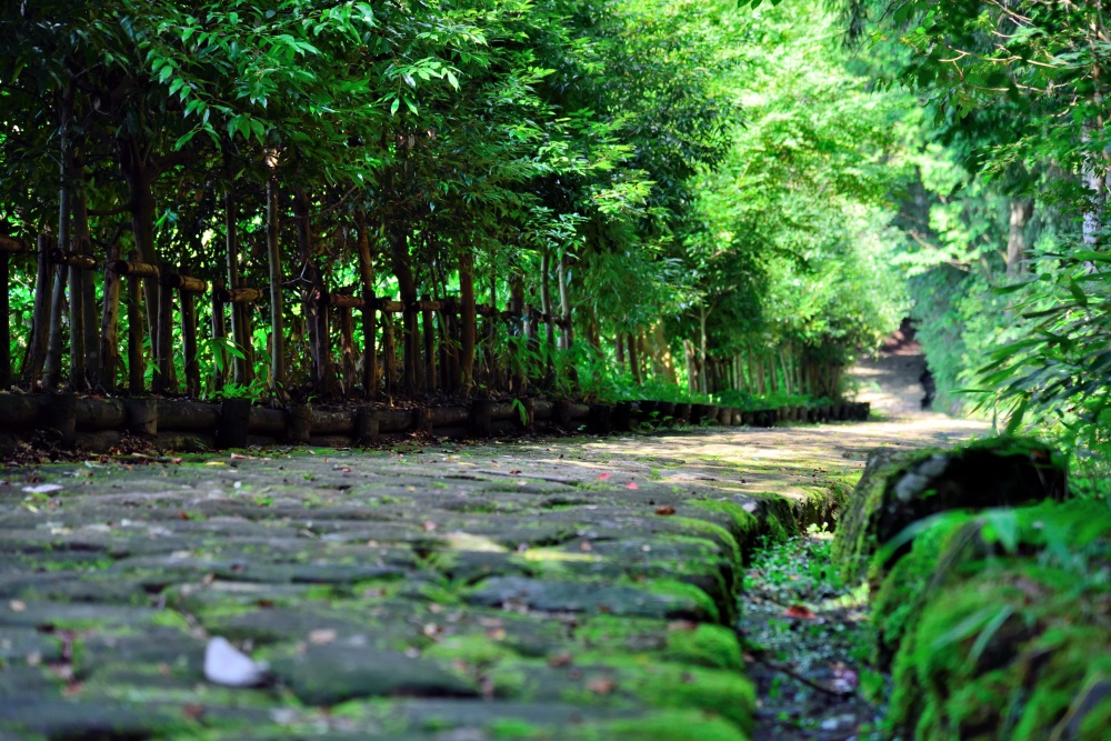 田んぼが広がる里山を抜け、山道を奥へと入っていくと突然、美濃歌舞伎博物館相生座の入口が現れます。車を停めて、中へ入ると砂利道でつくられた小道があり、その奥の林の中にあるのが美濃歌舞伎博物館相生座。明治時代に建てられた芝居小屋を復元した木造建物には、凛とした空気と爽やかな木の香りがあり、その姿は森に馴染んでいます。