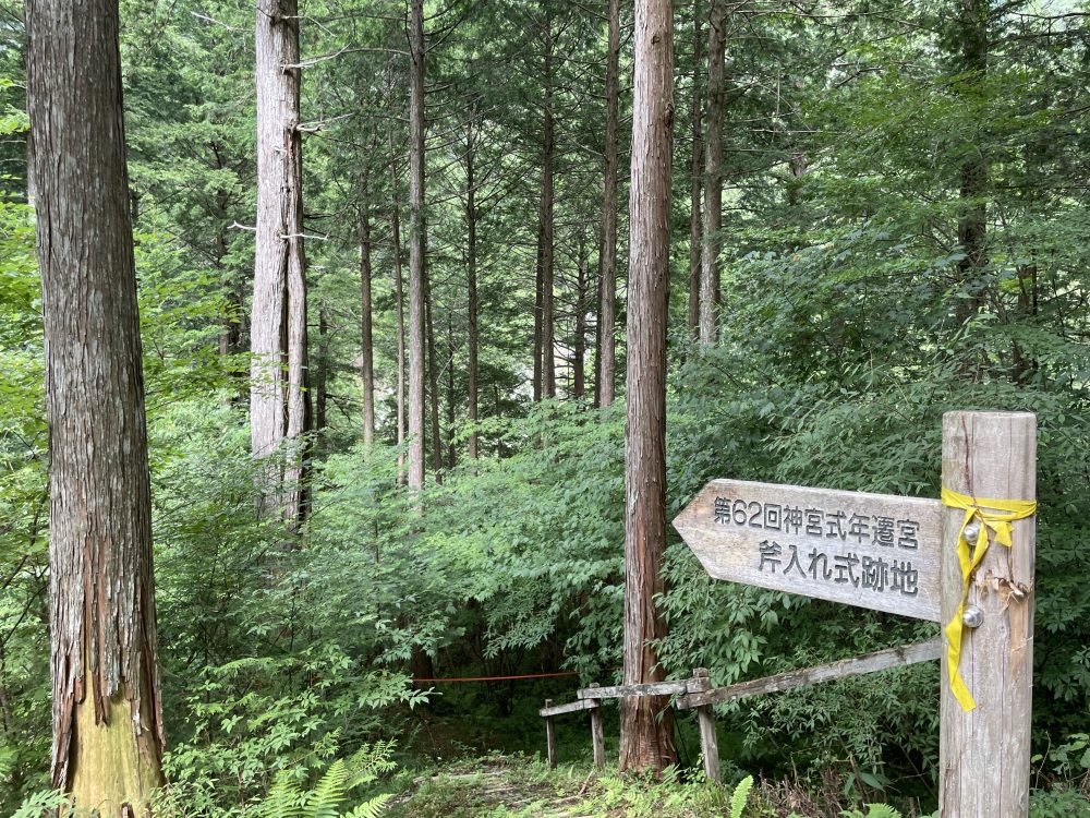 この木曽ヒノキ備林を含めた裏木曽の森を歩く「裏木曽古事の森ウォーキングガイドツアー」では、伝統の伐倒技法「三ツ緒(みつお)伐(ぎ)り」によって伐られた、前回の伊勢神宮式年遷宮の御神木や美しい滝などを見ることができます。
