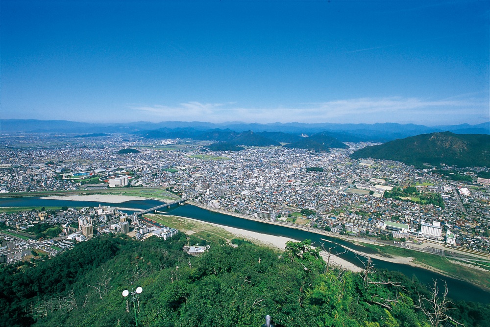 金華山の頂上から、長良川と町並みを一望