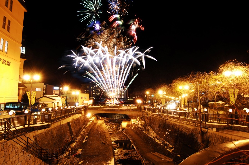日暮れとともに温泉街の中心・阿多野通りには行灯が灯され、夜の街を照らします。例年1月~3月の毎週土曜日には、「下呂温泉花火物語」と題して盛大な花火が。宿の窓から見るのもよし、食後にゆったりと夜の街に出かけるのもまた楽しいひととき。