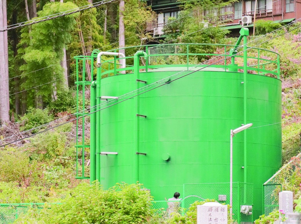もう一つの「宝」が温泉タンクです。源泉から湧き出る温泉をタンクに集め、温泉街にくまなく巡らせたパイプを通し、旅館やホテルに送っています。