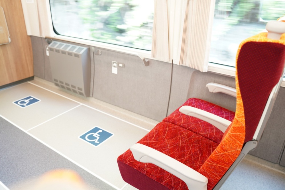 また、バリアフリー専用の席が確保されていて、トイレや通路も車椅子に対応しているので、車内全体が広く余裕がある印象でした。