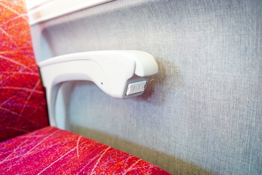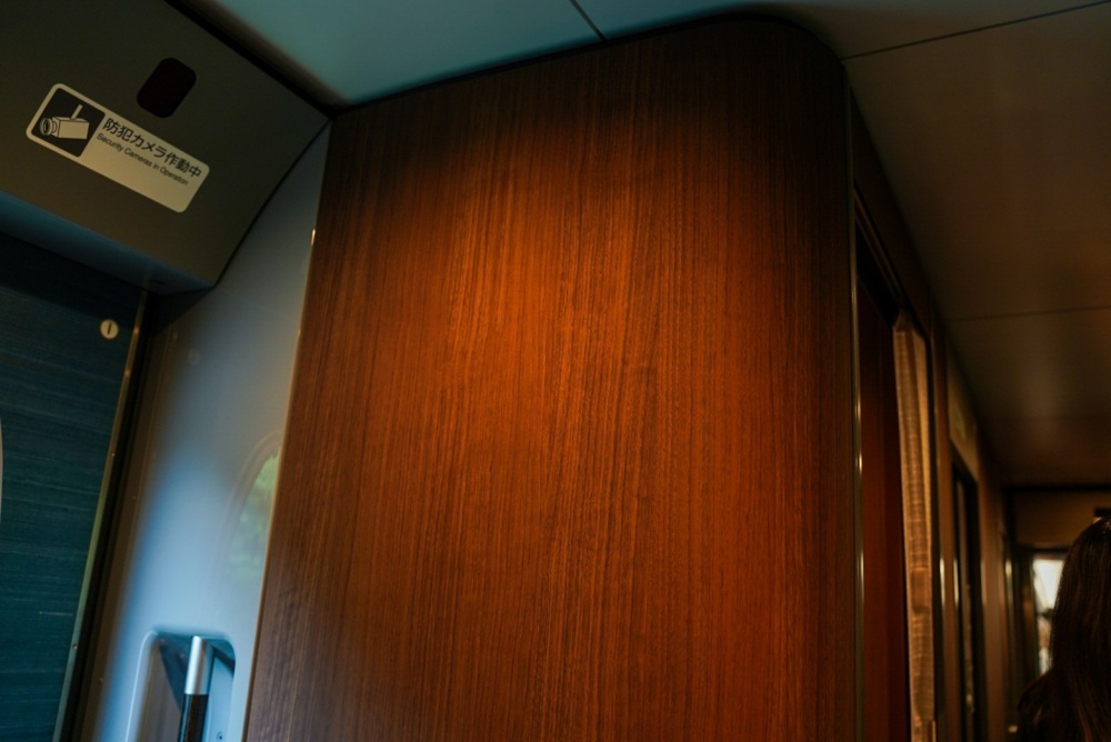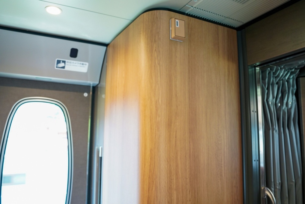 さらに、車内の壁面部分は木目調になっているのですが、実はこの木目も普通車とグリーン車で色の深さが異なっています。普通車は、ナチュラルな色合いの木目を使用していて爽やかな印象でした。一方グリーン車は、色の濃い木目を使用しており、より上質感のある印象となっていました。こちらもぜひチェックしてみてください。