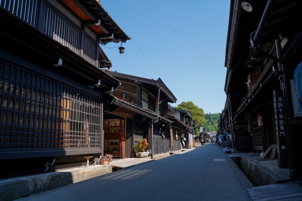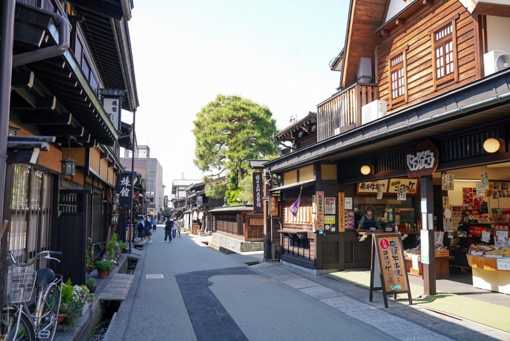 高山駅に到着しました!早速、観光地を巡っていきます。まず、高山を観光するなら外せない「古い町並」を歩いてみましょう。こちらでは、昔ながらの町並みはもちろん、たくさんの食べ歩きのお店やお買い物を楽しむことができます。