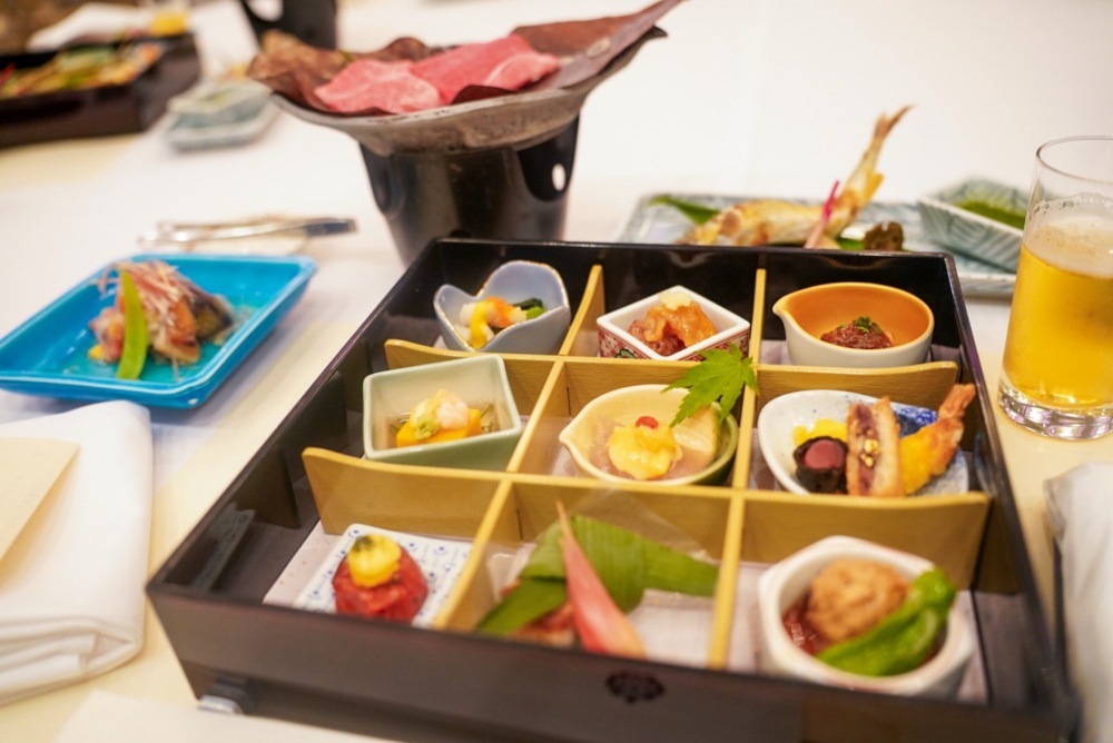 今回の宿泊先はホテルアソシア高山リゾート。市街地から離れた丘に建っているため、高山の自然豊かな景色や北アルプスを一望できるとても素敵なホテルです。何よりも魅力なのは、露天風呂を10種類も楽しめること。ホテルの温泉棟であるスパウィングには、二階層にまたがる「天の湯」「望の湯」という2種類の温泉フロアがあり、お部屋と同じように景色を楽しめる露天風呂になっています。